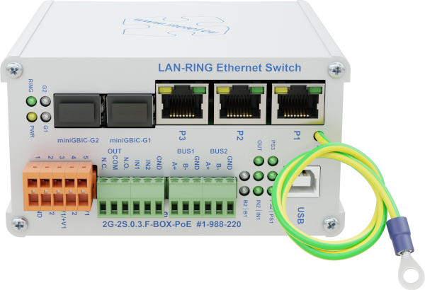 Przemysłowe zarządzalne switche PoE+ LAN-RING posiadają porty Ethernet, sloty SFP, a także magistralę RS485, wejścia cyfrowe/alarmowe i wyjścia przekaźnikowe. Zarządzanie zdarzeniami, które jest częścią zaawansowanego zarządzania, sprawia, że switche te są idealne do zastosowań o wysokich wymaganiach w zakresie bezpieczeństwa i elastyczności wykorzystywanego sprzętu. Przełączniki obsługują redundantne topologie MESH/RING z odzyskiwaniem połączenia do 30 ms. Dzięki wysoce odpornemu sprzętowi, przełączniki mogą być wdrażane w szerokim zakresie temperatur pracy od -40 do 70 °C przy maksymalnej mocy PoE wynoszącej 90 W.