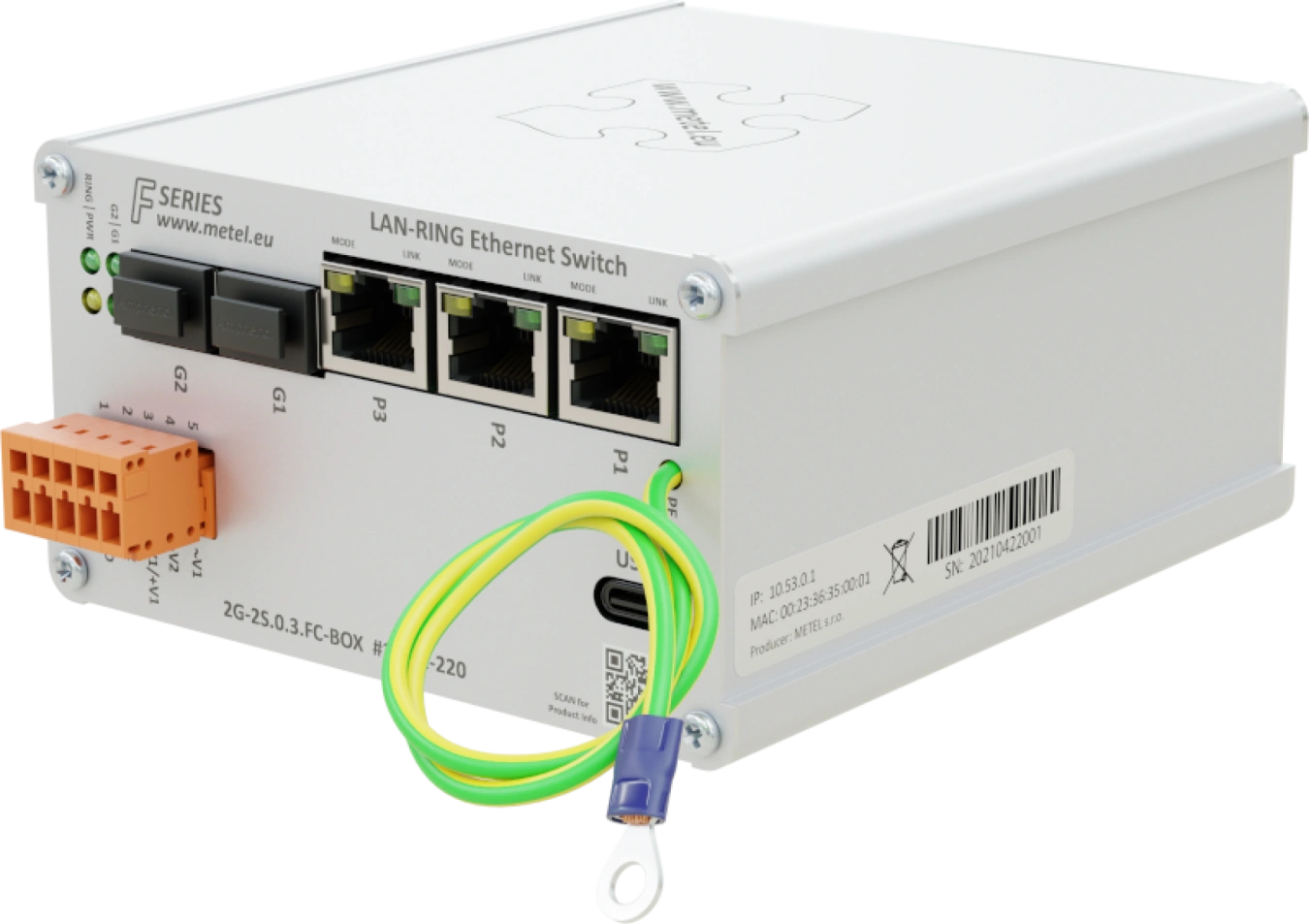 Przełącznik przemysłowy do topologii kołowej z 2x slotem SFP, 3x portem FE, redundantnym wejściem zasilania, precyzyjną ochroną przeciwprzepięciową, zarządzaniem zdarzeniami: SMTP, zdarzeniami TCP, zdarzeniami ETH, klientem HTTP (zarządzanie kamerą), 8x IPWatchdog.... , temperatura pracy -40...+75 °C, VLAN, QoS, IGMP, SNMPv2/v3, SNTP.