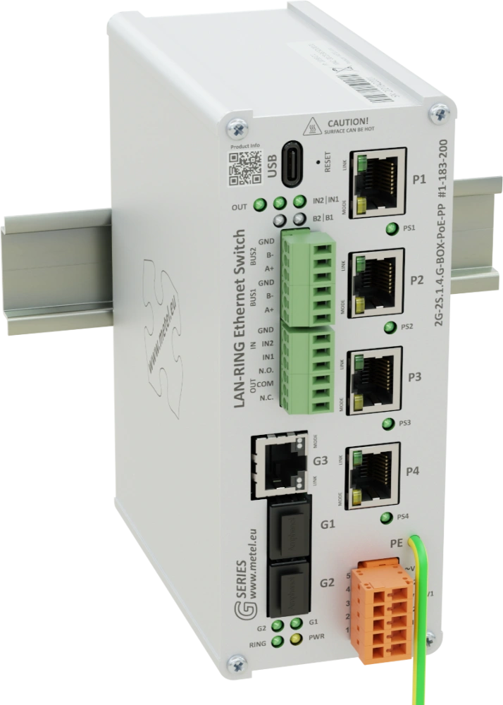 Gli switch industriali gestiti con configurazione SSH CLI e SIMULand GUI sono dotati di slot SFP, Gigabit Ethernet, Fast Ethernet con PoE++, bus RS485, ingressi digitali/di allarme e relè programmabili. Oltre a supportare i comuni standard di rete, includono anche la gestione degli eventi con 64 eventi automatici, rendendo questi switch ideali per applicazioni complesse con elevate esigenze di sicurezza e flessibilità dei dispositivi utilizzati. Gli switch supportano topologie MESH/RING ridondanti con recupero dei collegamenti inferiore a 30 ms e alimentatori ridondanti. L'hardware altamente resistente consente di utilizzare gli switch in ambienti difficili con un'ampia gamma di temperature operative.