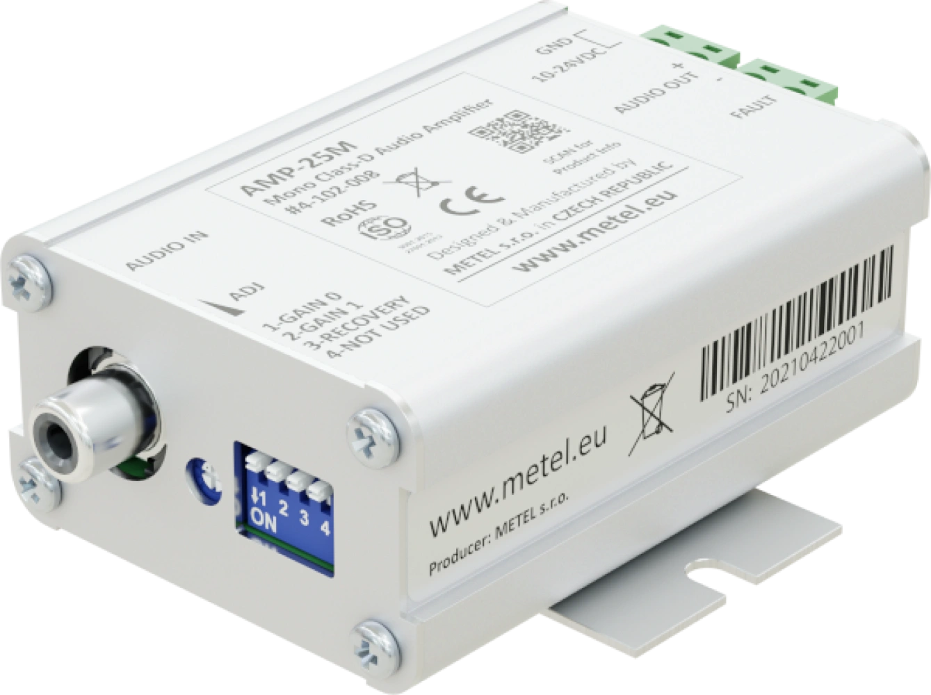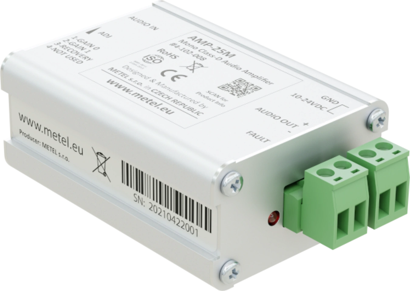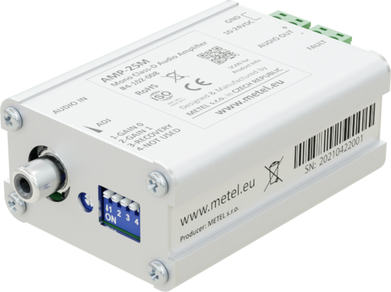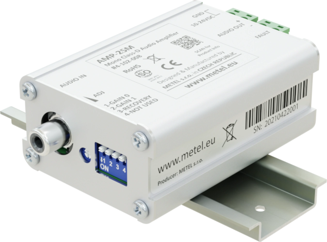 Gli amplificatori audio di classe D vengono utilizzati quando si collegano le schede audio IF-06 direttamente agli altoparlanti. Le applicazioni tipiche sono la riproduzione di rapporti automatici dalla memoria del PLC e di rapporti provenienti da sale di controllo remote.