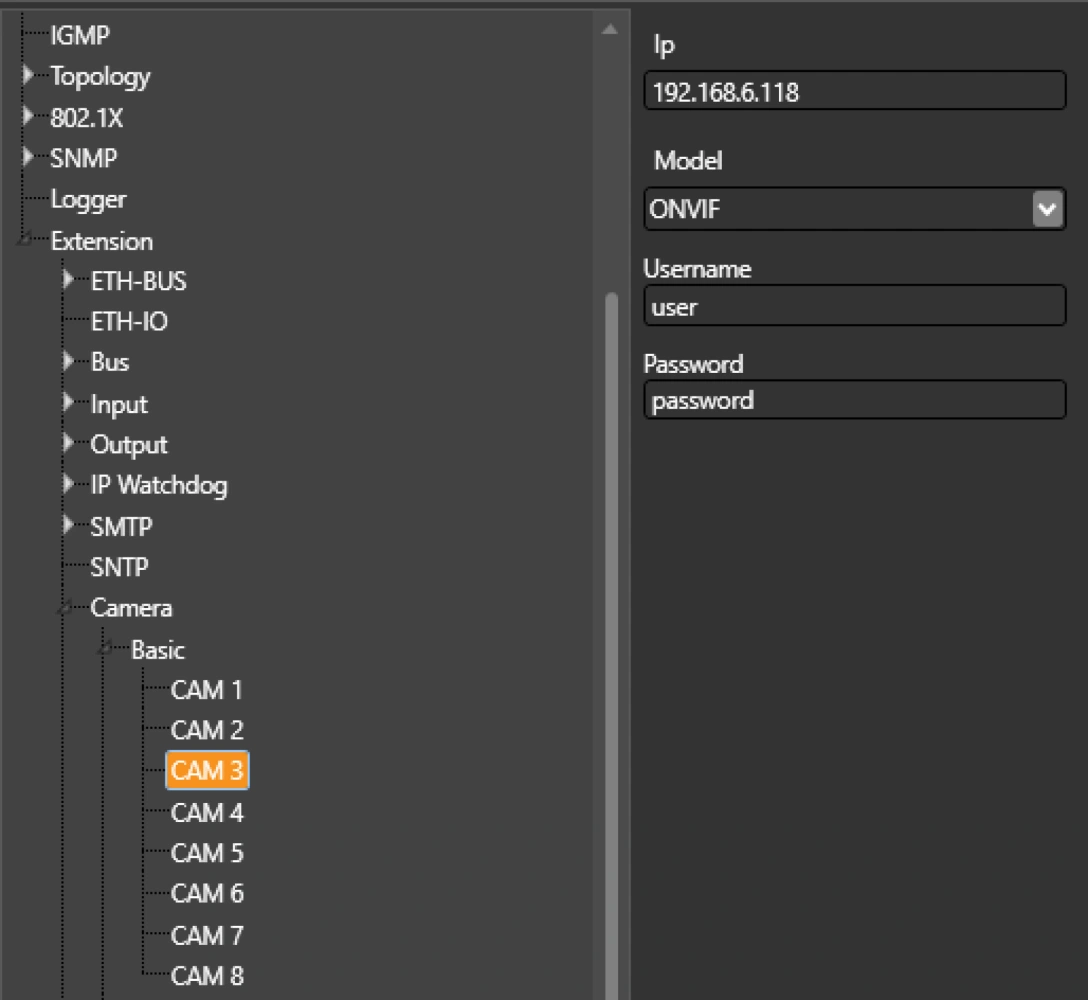 Set the IP address and login credentials of the cameras. The camera to be controlled does not need to be connected directly to the METEL device where the HTTP commands are stored, but can be controlled remotely via LAN. Remote inputs can thus be connected to the cameras easily and, more importantly, without additional cabling.