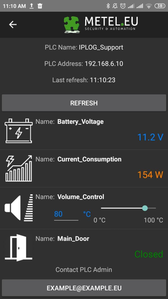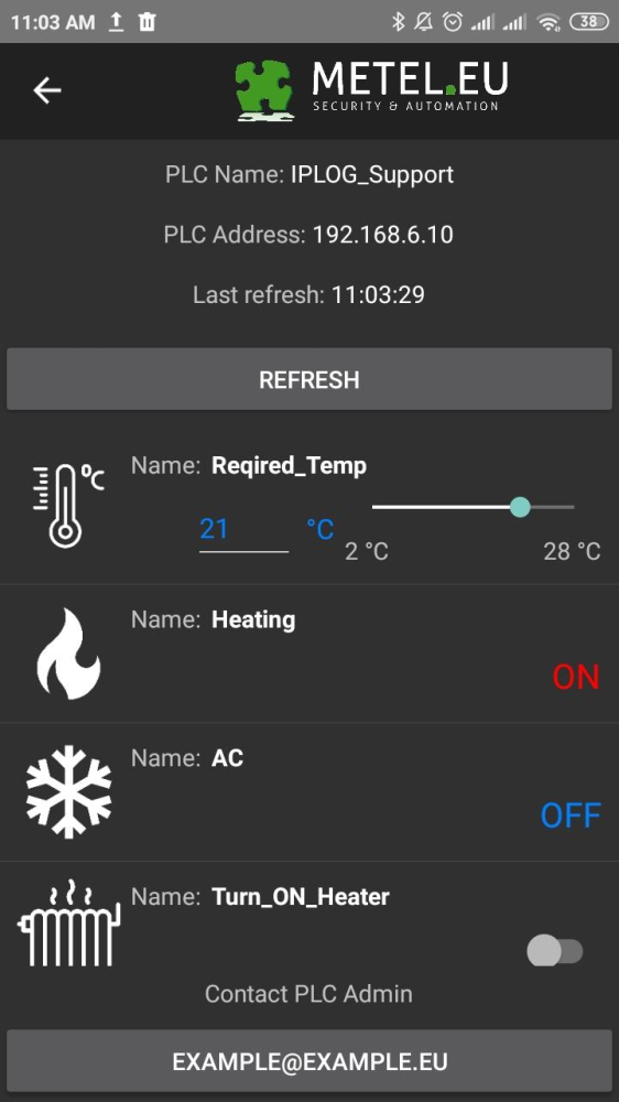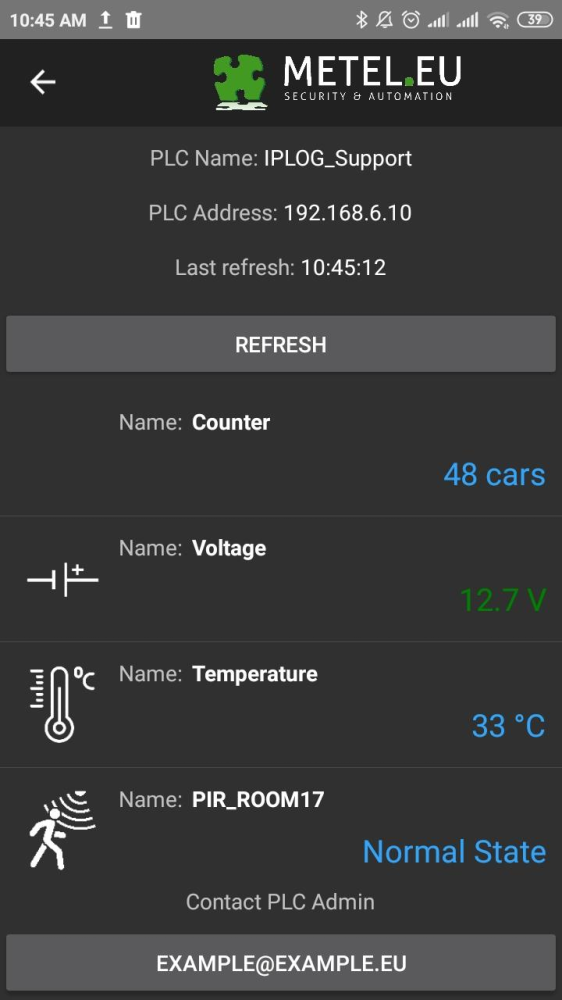 The app allows users to conveniently control IPLOG PLCs from mobile devices. It supports controlling outputs and monitoring the status of inputs available in the IPLOG system. The app can be used together with the local IEC61131-3 program running on the PLC. The program also defines what will have higher priority. Either the local program or the remote user. This setting is independent for each input and output.