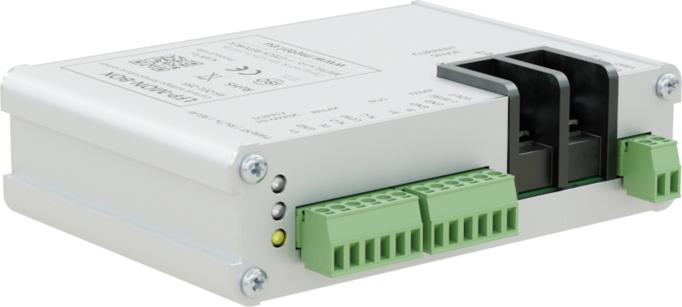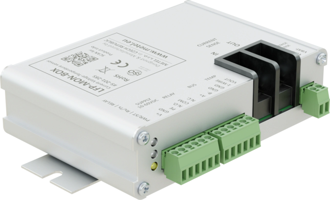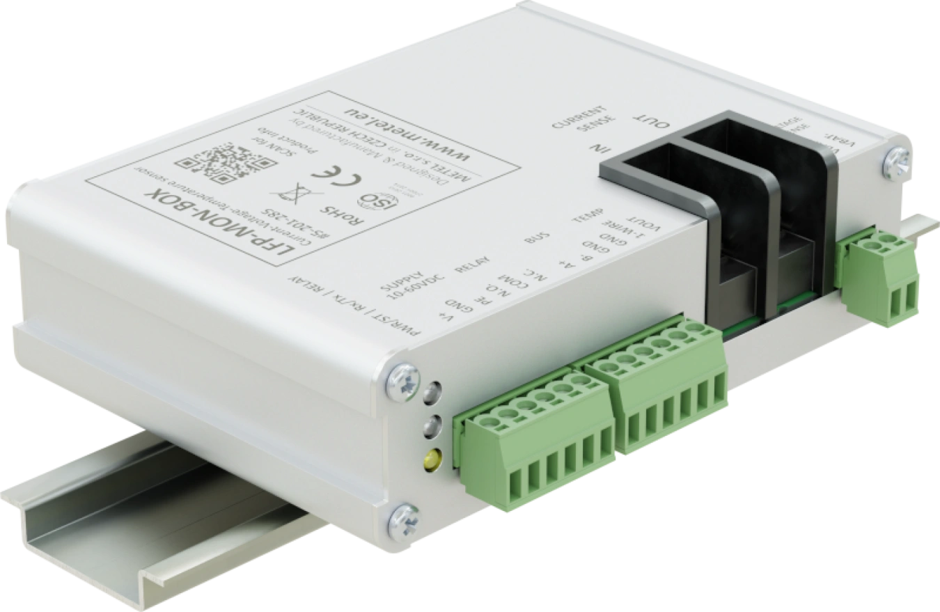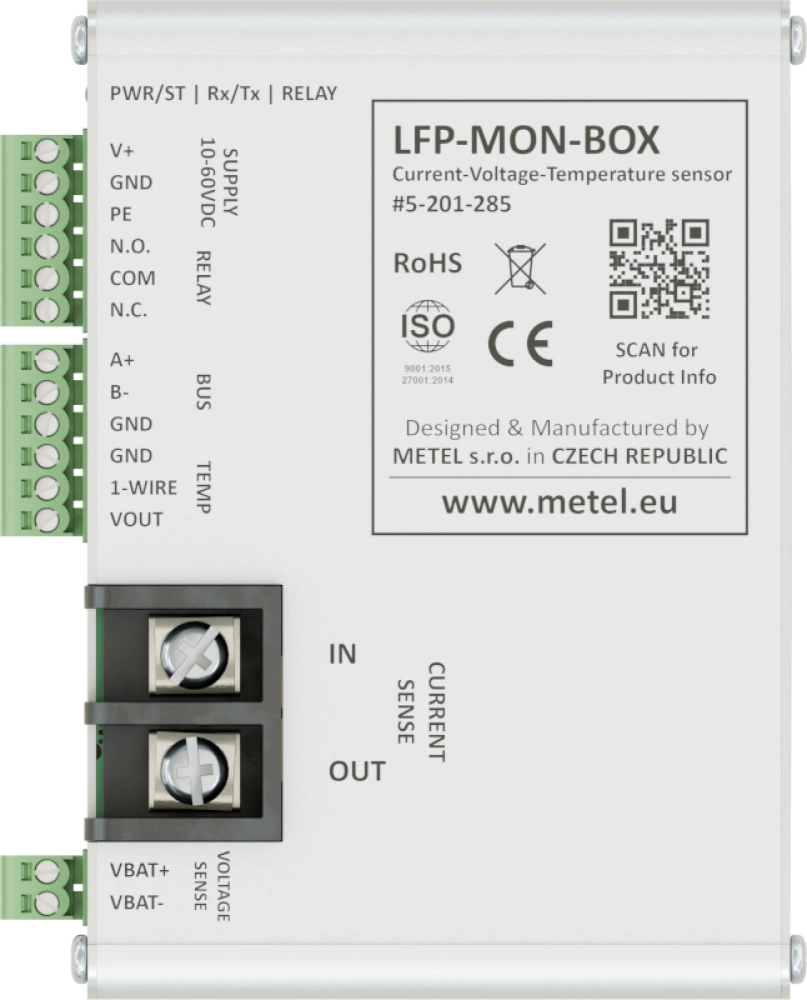 Unità Modbus-RTU per il monitoraggio di temperatura, tensione e corrente della batteria. L'intervallo di corrente misurato di 30 A consente l'utilizzo in un'ampia gamma di applicazioni che richiedono il monitoraggio online della batteria. È incluso un sensore di temperatura digitale esterno a 1 filo per ottenere informazioni precise sulla temperatura attuale.