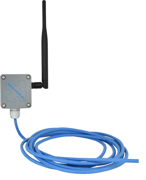 LoRaWAN End Node module including +3dB antenna and 3m connection cable. The module is designed for connection to an IPLOG-GAMA PLC with IF-18G communication board. Outdoor design with IP55 protection and operating temperature range from -40 to +75°C.