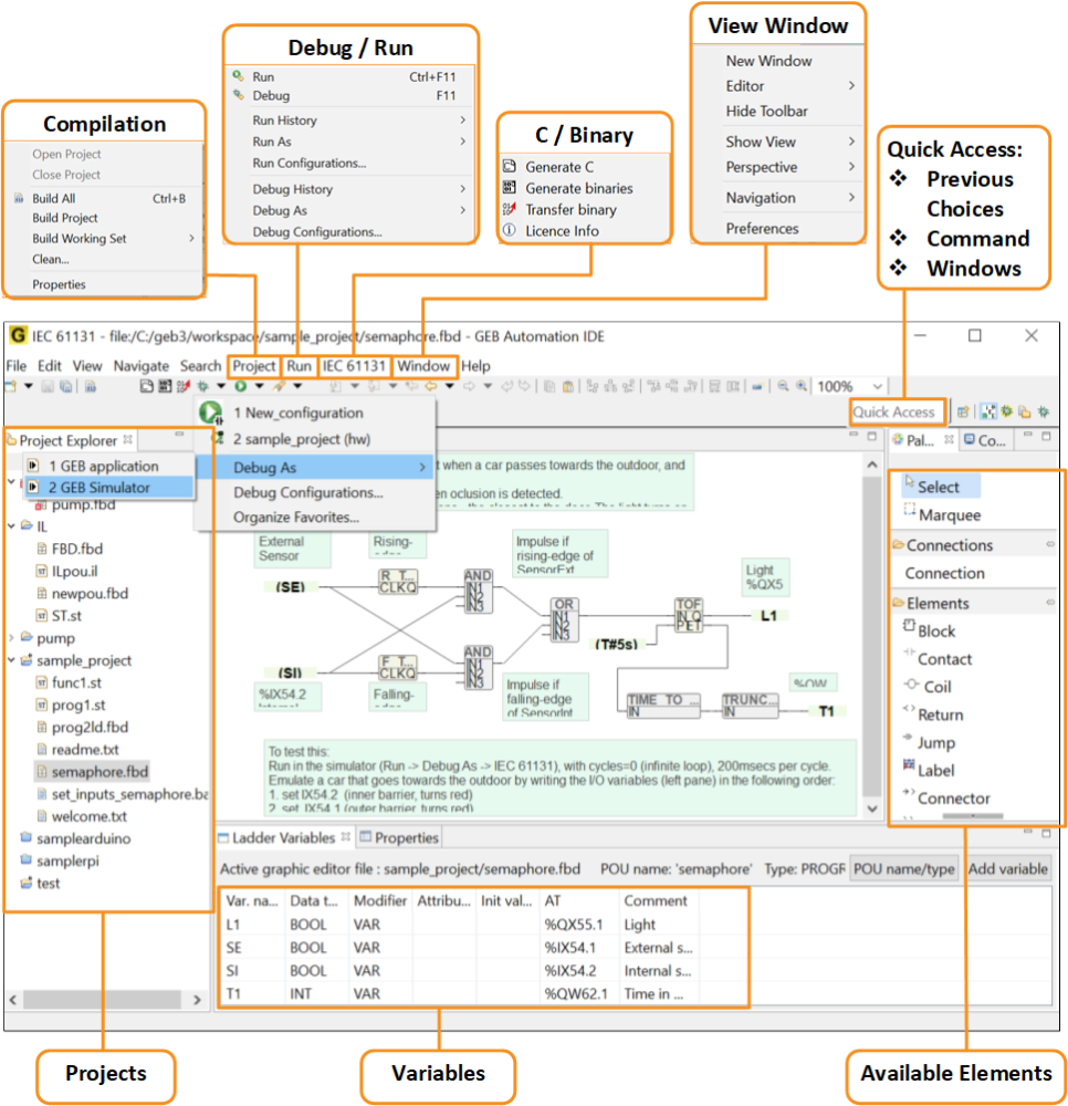 The METEL IEC 61131-3 IDE is a freeware software for creating programs for IPLOG-GAMA PLCs in accordance with the IEC 61131-3 standard. It allows the user to write programs in four standard-defined languages.