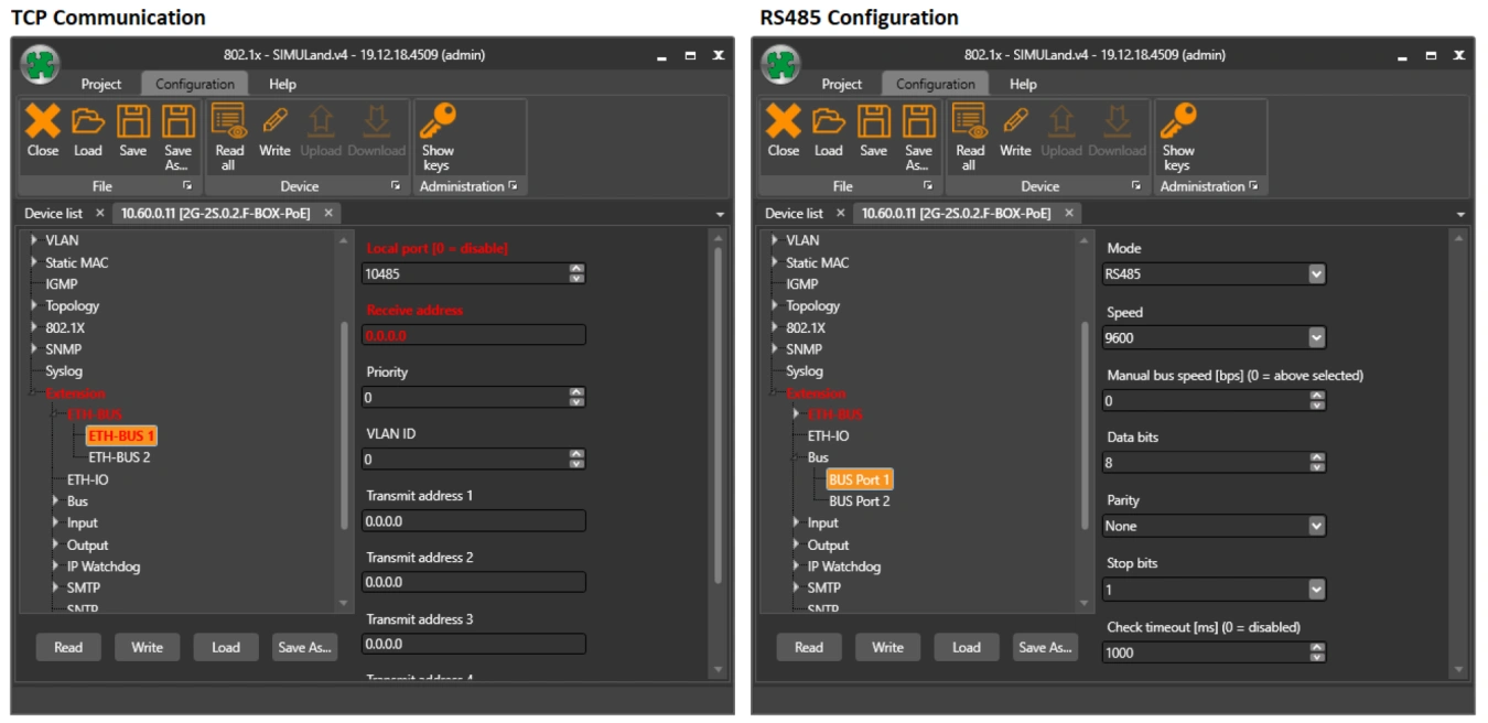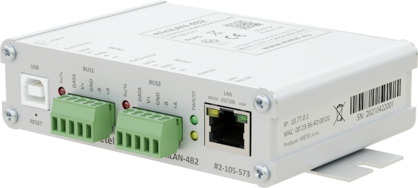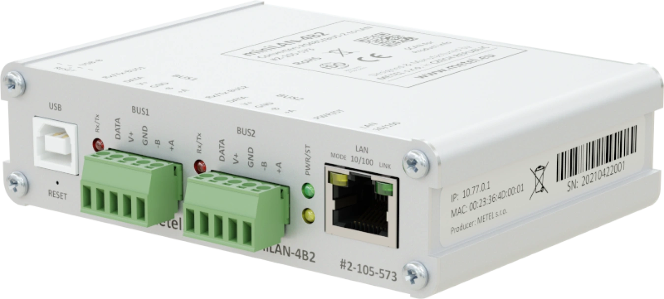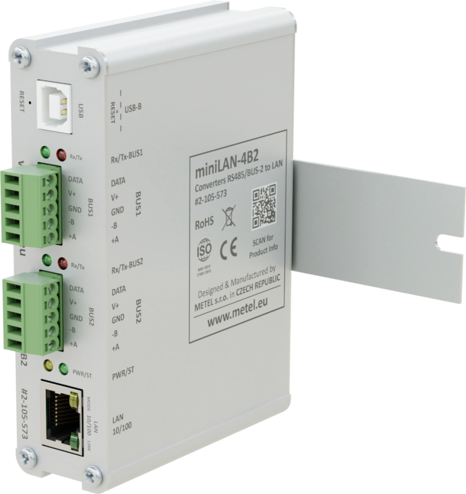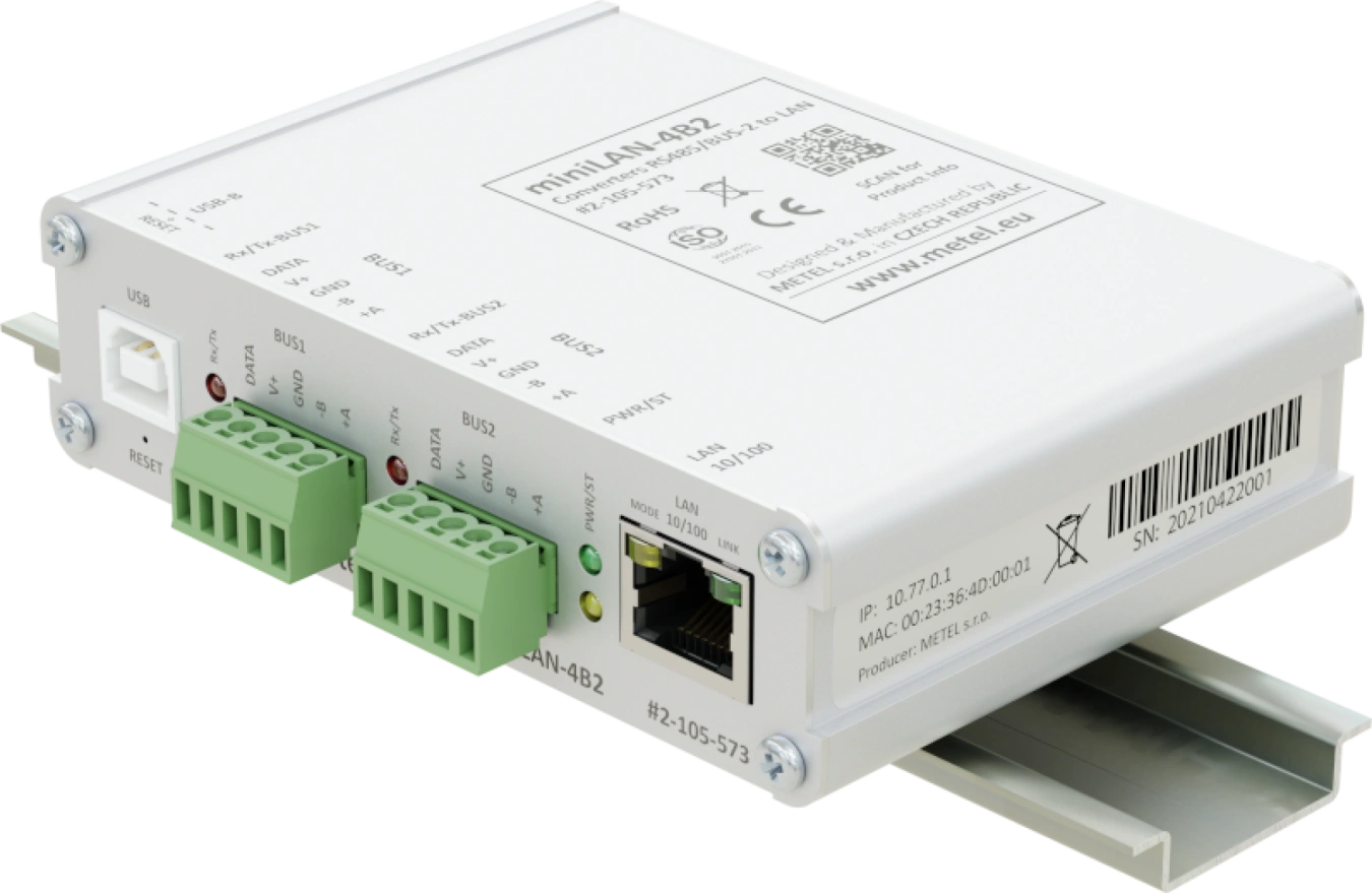 Dwukanałowe konwertery RS485 i BUS-2 do sieci LAN. Konwertery obsługują protokoły Modbus RTU/TCP (TCP-serwer i klient). Konwertery są również kompatybilne z systemami alarmowymi ASSET, Galaxy Dimension i MB-Secure. Ważne certyfikaty potwierdzające zgodność z CSN 50131-1 są dostępne do pobrania na naszej stronie internetowej.