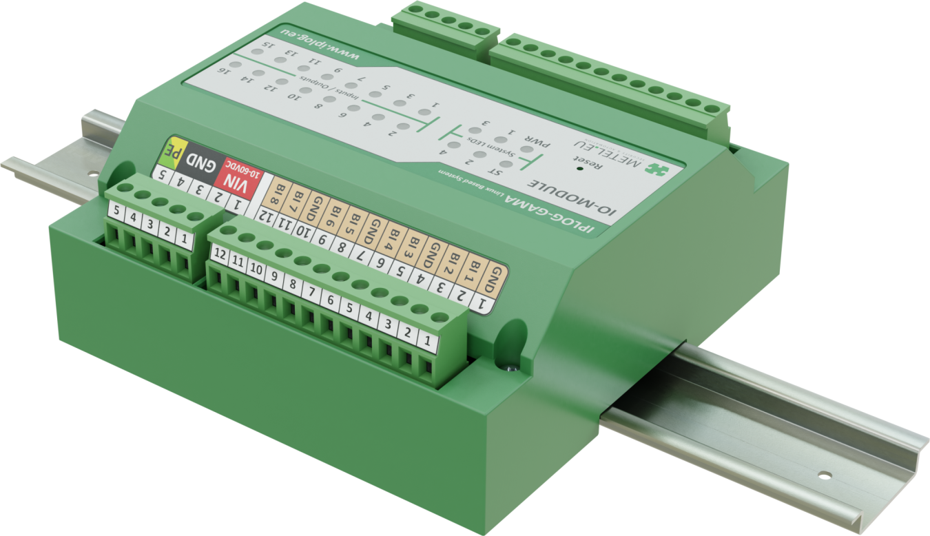I moduli IO sono dispositivi Slave Modbus RTU e possono quindi essere facilmente collegati a qualsiasi dispositivo Master Modbus RTU. Esempi tipici sono i PLC IPLOG-Gx e gli interruttori industriali LAN-RING. Gli ingressi e le uscite possono essere controllati utilizzando i protocolli Modbus RTU. Il design industriale con protezione integrata contro le sovratensioni per tutti gli ingressi e le uscite garantisce un funzionamento affidabile anche in condizioni molto difficili. I moduli IO sono progettati per essere installati su guide DIN35 di quadri elettrici domestici.