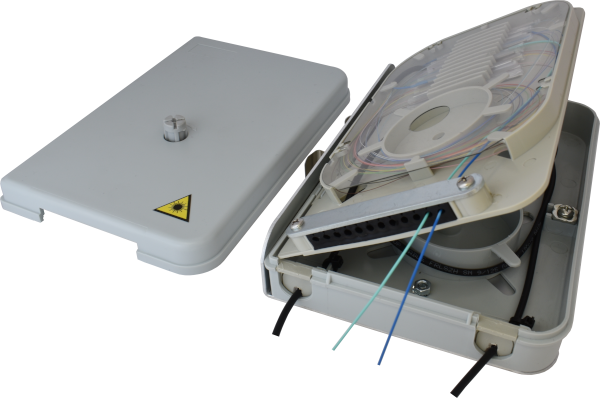 Optical box for easy connection of 2 optical cables (max. diameter 13 mm), mounting up to 12 optical welds and mounting up to 12 pigtails. Secure fixation of connected cables / pigtails and protection of optical welds. The inner space of the box is divided into a section for fixing up to 12 optical welds + connecting up to 12 optical pigtails and a space for connecting cables + looping optical fibres. Removable cover with lock. Easy installation and maintenance. Suitable for OH4320, OH6425, OH7525 and OH8625 series switchgear.