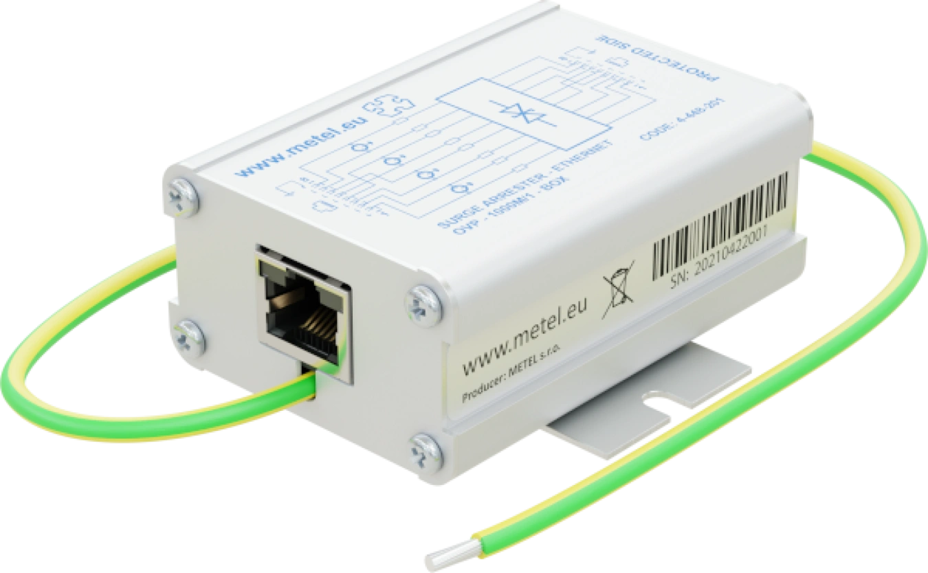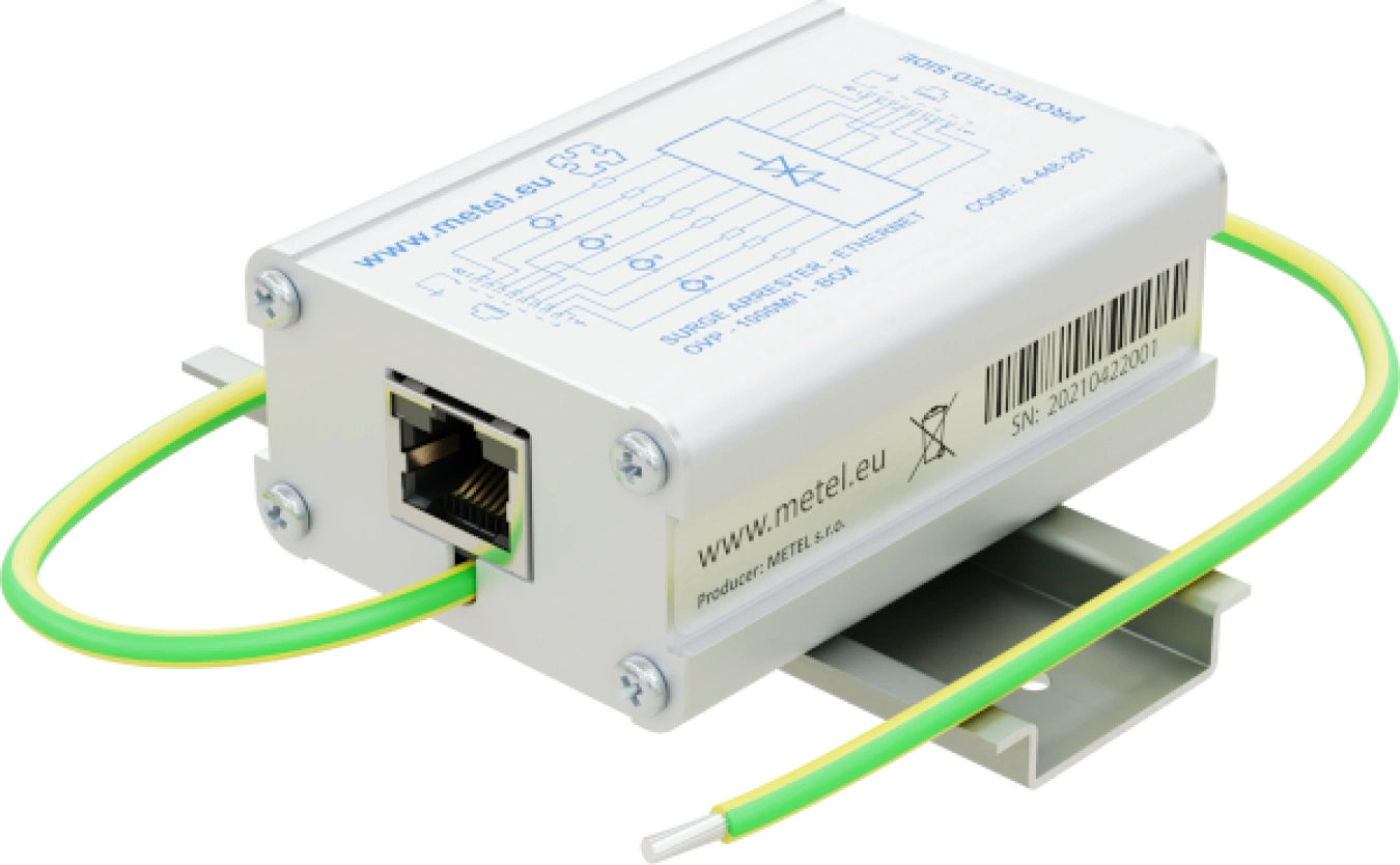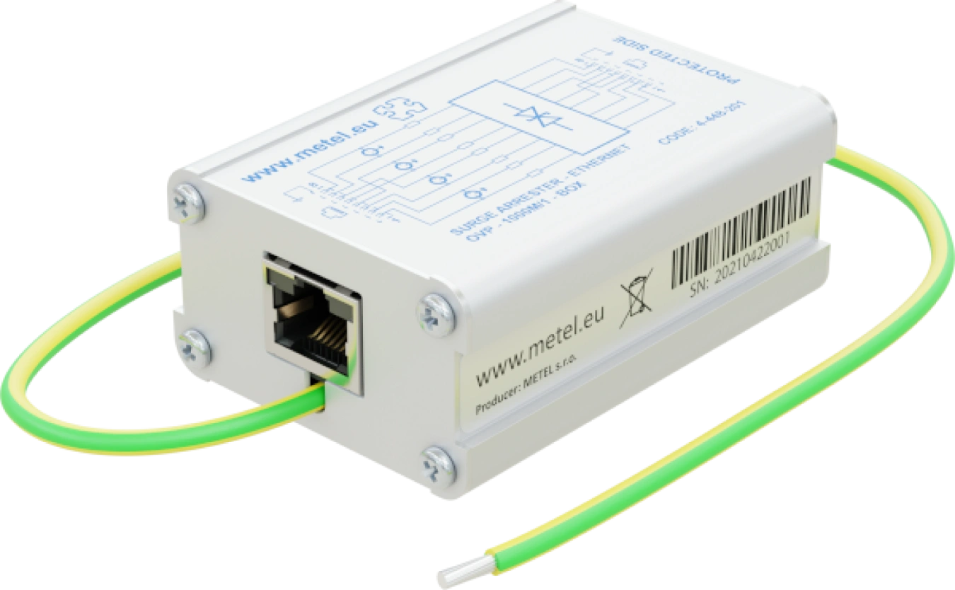 OVP-1000M/1-BOX, 1000BASE-T interface surge protector, two-stage design, galvanically isolated PE terminal, installation on flat surface or DIN35
