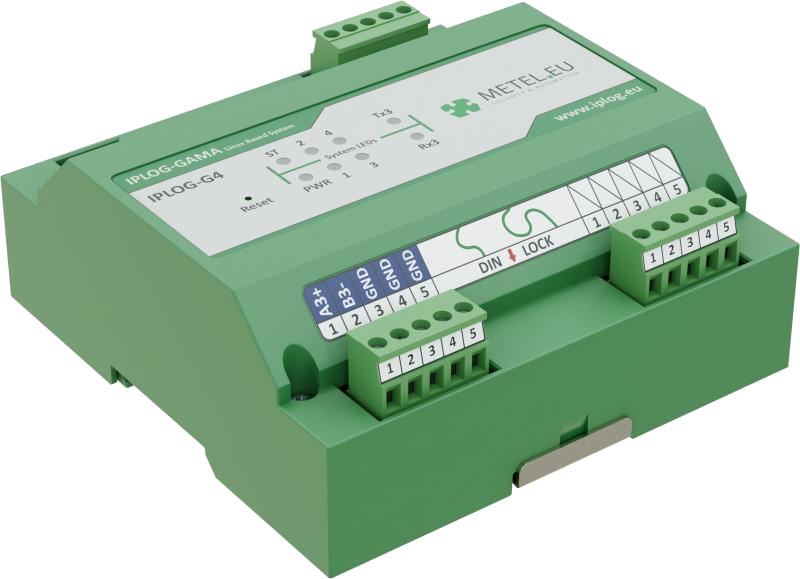 Płyta główna zawierająca moduł CPU w wersji G z procesorem ARM CORTEX A5, system operacyjny Linux, 1x LAN 10/100 Base-Tx, 1x USB-A i USB-B, 2x RS485 z obsługą Modbus RTU, 1x wejście cyfrowe 230 VAC, 3x 10-bitowe wejścia alarmowe / cyfrowe 5 V, 2x wyjście przekaźnikowe NOC 24 V.