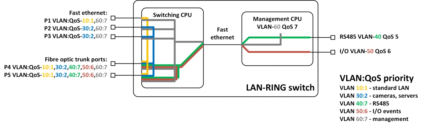 For security reasons, all LAN-RING switches support extended VLAN management, which provides separate VLANs for: