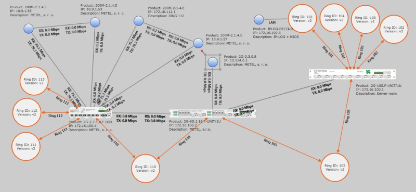 In addition, the SIMULandv4 application also includes a unique Topology tool that automatically displays all searched LAN-RING switches and IPLOG-GAMA controllers in the topology.