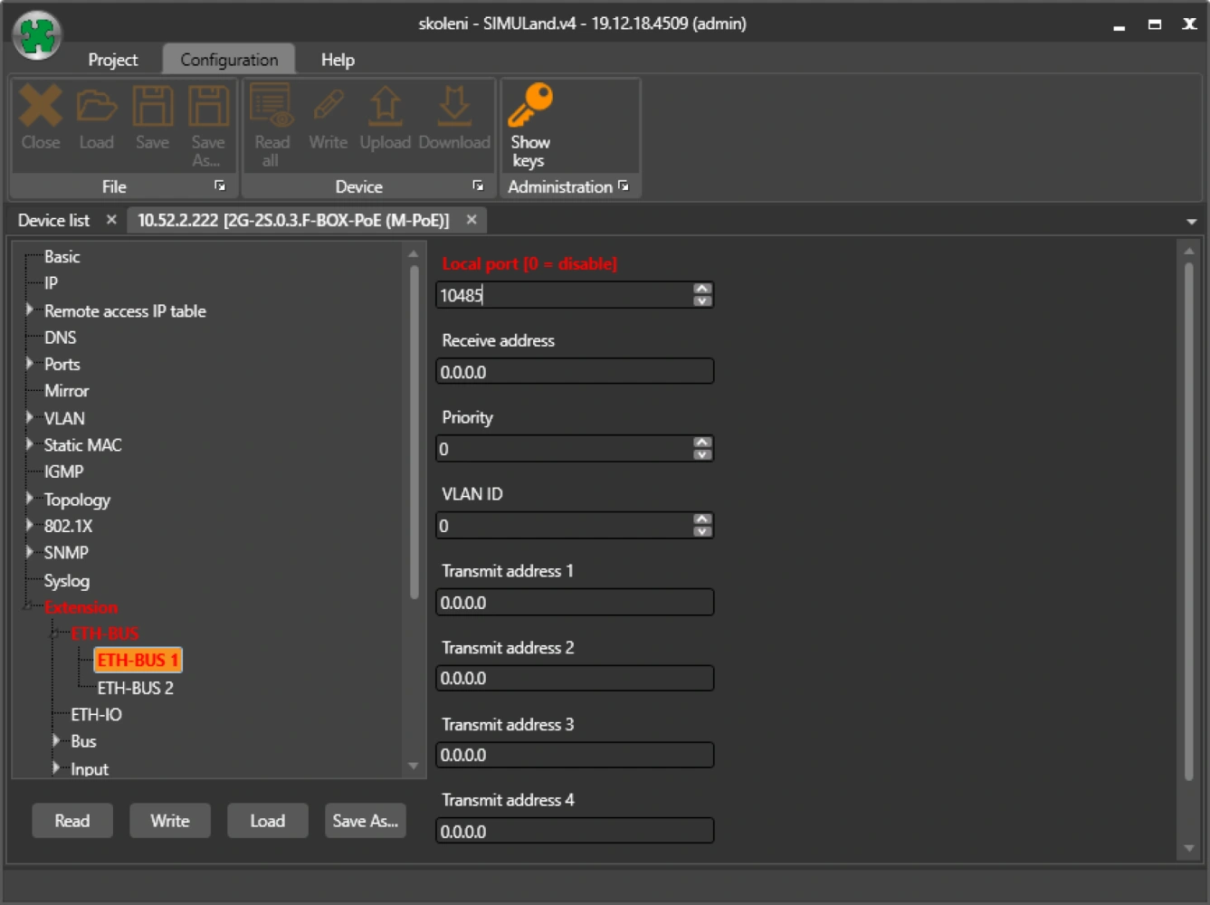 METEL IP devices support TCP mode by default on RS485 and RS232 ports. The end devices, which in this case are LAN-RING switches, IPLOG monitoring units or miniLAN serial link converters, are set to TCP server mode. After the TCP port and communication mode have been set up in one step, the connection can be made: