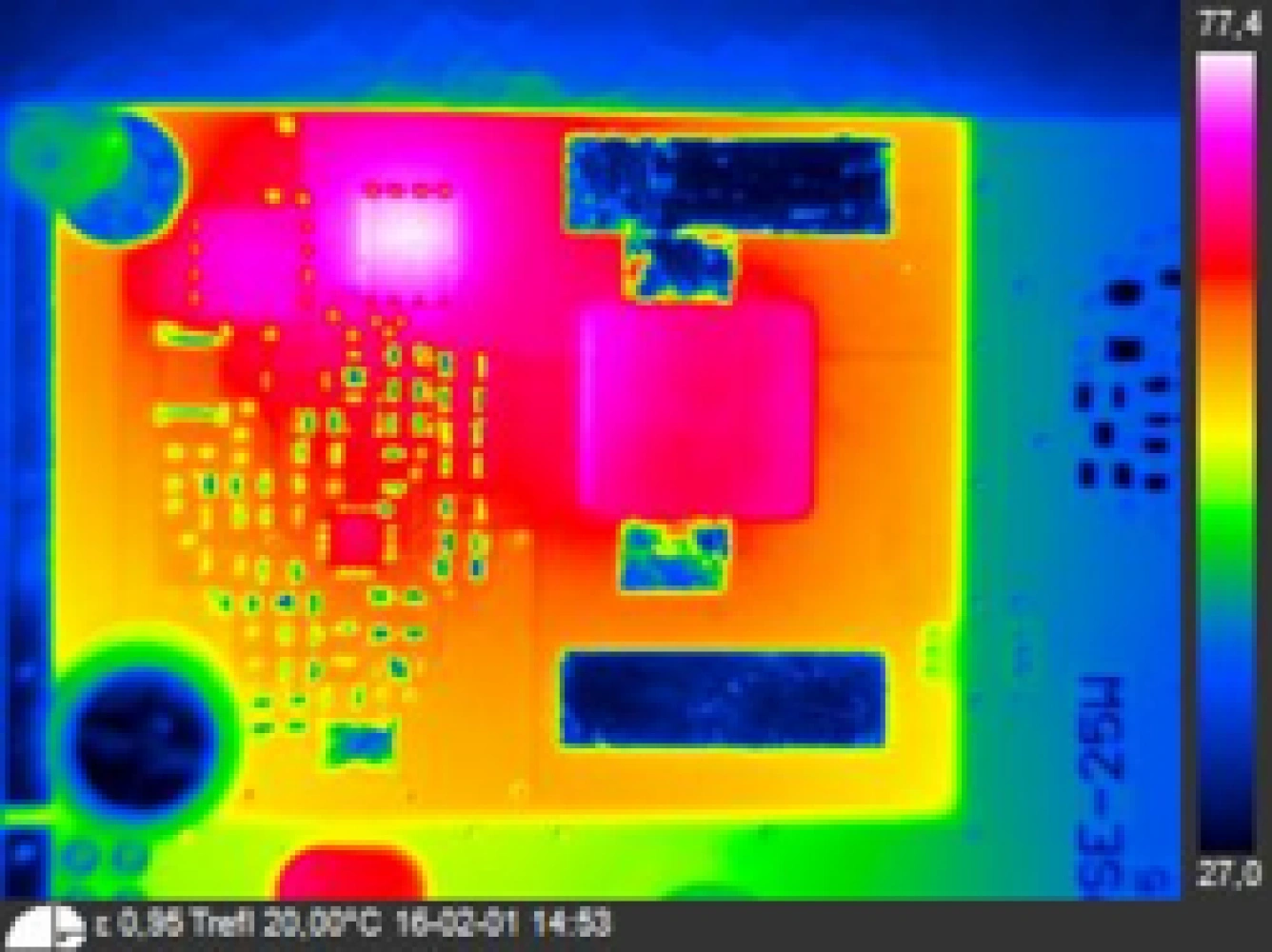 Wykorzystujemy obrazowanie termiczne w szczególności do diagnostyki prewencyjnej nowo zaprojektowanych obwodów drukowanych. Po zamontowaniu prototypów i przywróceniu ich do życia, inspekcja kamerą termowizyjną ujawnia komponenty i połączenia, które nadmiernie się nagrzewają. Wielką zaletą termowizji jest jej szybkość i bezkontaktowość. W przypadku wykrycia niepożądanego nagrzewania się prototypu, dokonujemy korekty projektu i powtarzamy test. Gwarantuje to, że tylko dobrze zaprojektowane urządzenia trafiają do produkcji seryjnej.